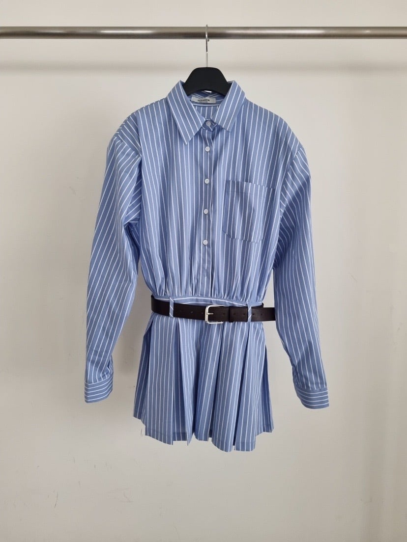 【B014】全2色 ベルト付シャツワンピース